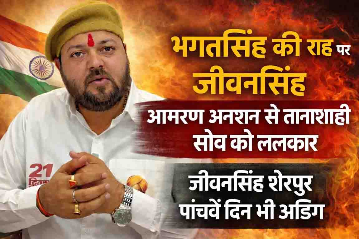 जावरा। देश की आज़ादी के महान क्रांतिकारी शहीद भगतसिंह ने अंग्रेजी हुकूमत से अपनी मांगें मनवाने के लिए आमरण अनशन का मार्ग चुना था। उनके अदम्य साहस और संकल्प के आगे तत्कालीन ब्रिटिश सरकार को झुकना पड़ा और उनकी मांगें माननी पड़ीं। उसी ऐतिहासिक परंपरा का अनुसरण करते हुए वर्तमान समय में करणी सेना परिवार प्रमुख जीवनसिंह शेरपुर आम जनता और सर्व समाज से जुड़ी जनहित की 21 सूत्री मांगों को लेकर बीते पांच दिनों से आमरण अनशन पर डटे हुए हैं।